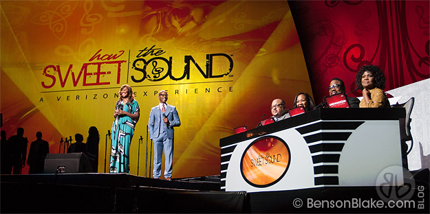 The 2012 How Sweet the Sound choir competition took place September 12th at the Verizon Center in Washington, DC. I had the opportunity to be backstage for the pre-show media interviews, where many in-depth questions were answered by the six artists who participated as hosts and judges. They fielded questions regarding the importance of this choir competition to the exposure of the gospel music industry, and the impact of opening up the competition this year to community and college choirs. A lot of buzz has been created on college campuses around the country.